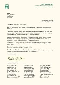 The letter follows in the wake of Asda workers earlier this month staging demonstrations as the supermarket giant’s second stage of its landmark court case kicked off, set to impact over 60,000 employees.